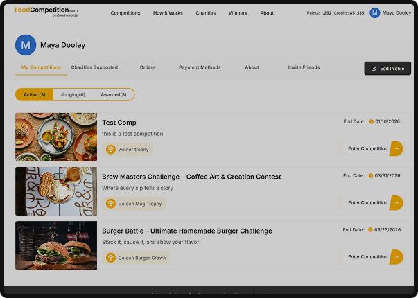 Each competition has its own rewards: cash prizes, trophies, achievements, and bragging rights. Entries are scored by our judges and our guest judge across a range of categories to keep things fair and fun.